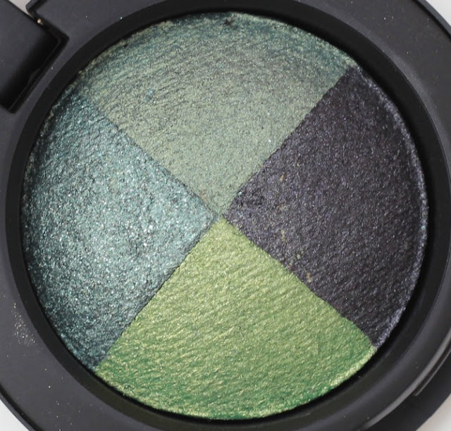 I really am quite partial to a green eye shadow, preferably a darker green (like shades 1 and 3 in the pic above... and 2). This is a gorgeous little quad by MeMeMe, it's called 'Ocean Eyes' - so aptly named - the colours really are deep ocean green, almost mermaid like, even reminding me of Medusa!